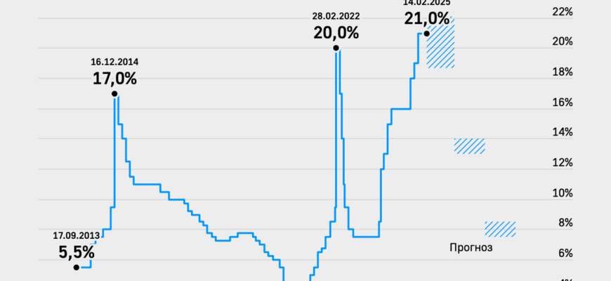 Центральный банк РФ уточнил свои прогнозы относительно средней ключевой ставки на предстоящие годы. Ожидается, что в 2025 году средняя ставка составит 19,2% (ранее прогнозировалось 18,8-19,6%). На период после 27 октября регулятор прогнозирует ставку в диапазоне 16,4-16,5%. Прогноз на 2026 год был повышен с 12-13% до 13-15%, а на 2027-2028 годы он остался неизменным — 7,5-8,5%.