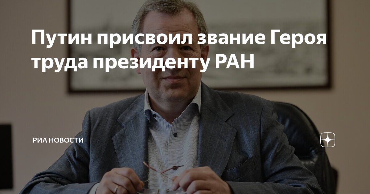 Президент Российской Федерации Владимир Путин подписал указ о присвоении почетного звания Героя Труда Российской Федерации Геннадию Красникову, который возглавляет Российскую академию наук. Соответствующий официальный документ был опубликован на государственном интернет-портале правовой информации.