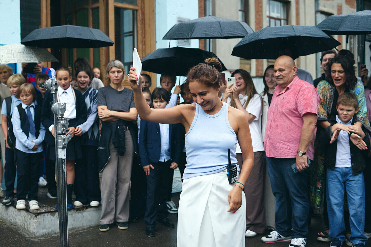 Автор этих строк, участвуя в массовке, погрузился в процесс съемок в Большом театре. Зрителям предстояло изображать смятение, когда за сценой объявлялось о смене певицы: «Изольда Вебер не сможет продолжить спектакль. Вместо нее петь будет молодая актриса Александра Милошина». Режиссер Анна Меликян лично давала указания актерам, восхищаясь «новой, красивой» артисткой в красном платье. Хотя роль господина в ложе, предположительно Игоря Миркурбанова, оставалась под вопросом, общий тон съемок был оживленным.